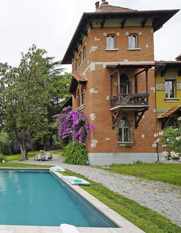 La villa gode di una bella vista lago, ha una struttura caratterizzata da una torre centrale ed un’architettura esterna in stile liberty, pavimenti in legno ed una preziosa scala centrale che porta ai piani della villa.