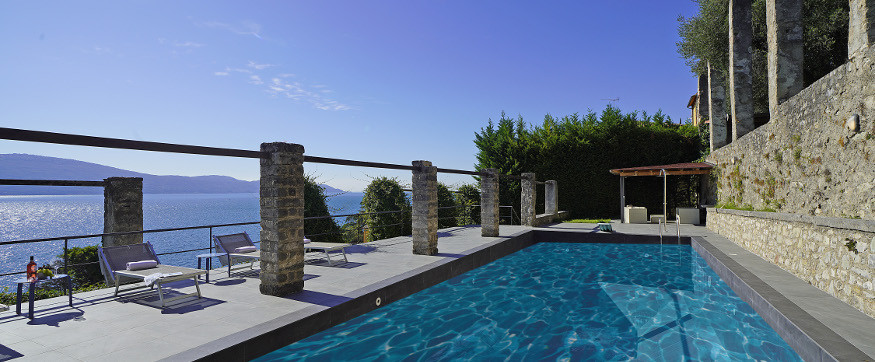 Villa di lusso con splendida vista sul lago e piscina privata. Aria condizionata. 9 posti letto in 4 camere da letto, a pochi passi dal lago, dai negozi e dai servizi.